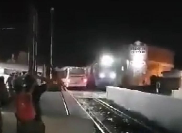 Una unidad de la línea 176 quedó atravesada en el cruce de vías de la ruta 197 y el ferrocarril San Martín a la altura de José C. Paz.