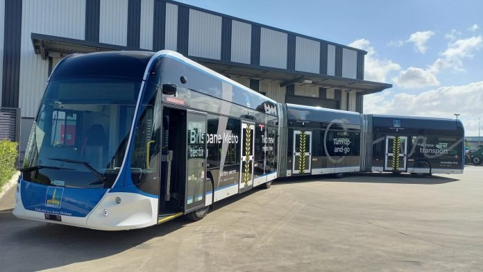 El vehículo piloto de Brisbane Metro (un autobús eléctrico a batería de 24 metros) llega a Australia