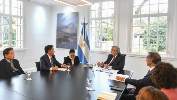 El presidente Alberto Fernández se reunió esta tarde en la residencia de Olivos con el CEO de la empresa china Gotion High Tech, Li Zhen, en el marco de un anuncio para el establecimiento de una planta de buses eléctricos y otra de fabricación de celdas y baterías de litio en el país asociados a la firma Corven.