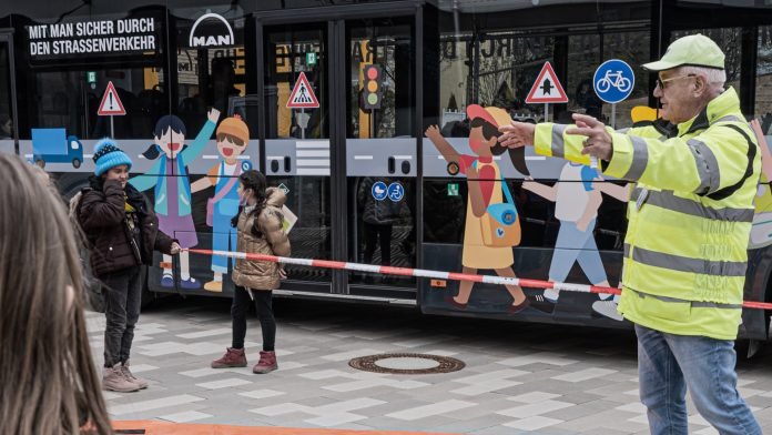 Para mostrar a los niños a qué deben prestar atención, especialmente cuando conducen un autobús, los expertos en seguridad vial junto con los formadores del proveedor de formación MAN ProfiDrive organizaron un total de 13 eventos en numerosas escuelas primarias en el área de Múnich durante los últimos meses. – y generó entusiasmo entre alumnos y profesores por igual: «El ‘punto ciego’