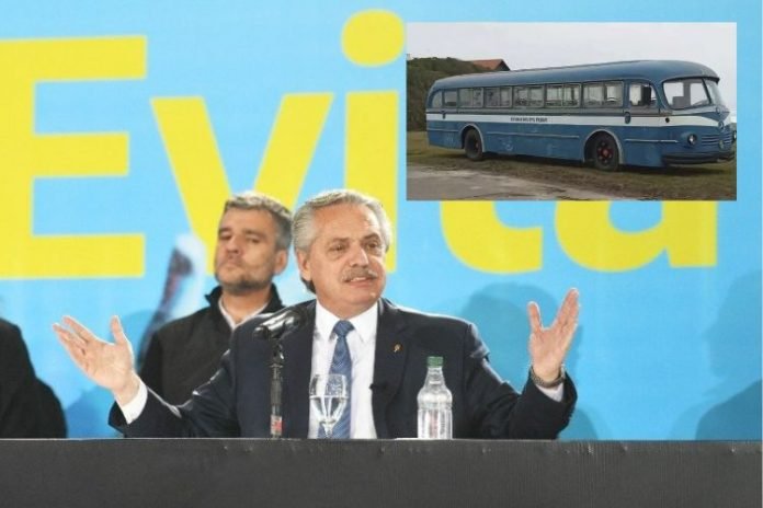 Pasado el mediodía y en el mismo lugar, Fernández visitó el colectivo restaurado de la Fundación Eva Perón, que se incorpora al patrimonio del Museo Eva Perón.