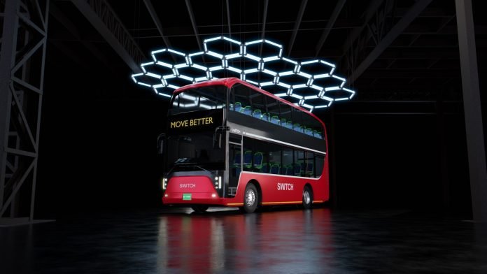 Switch Mobility presentó su nuevo modelo de autobús eléctrico de dos pisos con aire acondicionado, llamado Switch EiV 22. Hay espacio para 65 pasajeros sentados.