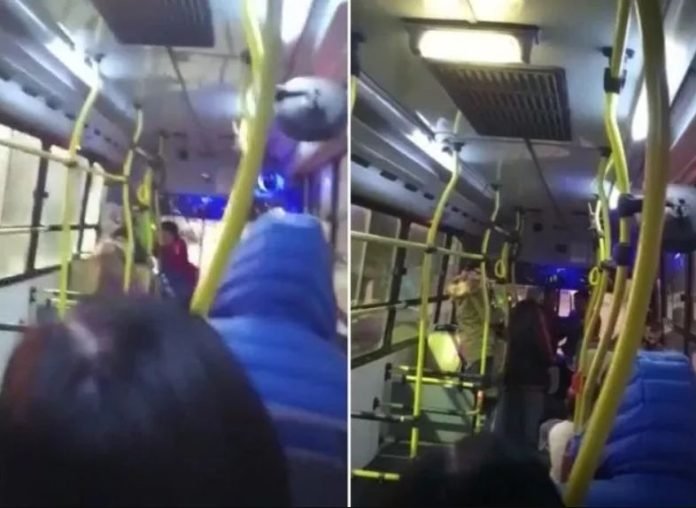 En la grabación captada por una de las personas que viajaba en el interno 118 de la línea que opera la empresa Villa Galicia-San José se ve cuando el hombre comienza su ataque mientras el vehículo sigue en movimiento. De fondo se escucha a otros pasajeros que gritan “pará”, “dejalo” y “bajenlo” sin conseguir detener al agresor.