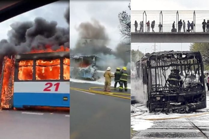 Se incendió un colectivo articulado de la Línea 21 en Acceso Tigre