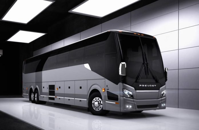 Por supuesto, todas las fuentes de luz externas e internas utilizan tecnología LED, y los exclusivos faros en la pared frontal también están equipados con una elegante tira de LED que sirve como luz de circulación diurna. Los diseñadores también pusieron gran énfasis en el diseño aerodinámico de la carrocería, como resultado, según Prevost, fue posible reducir el ruido del viento en el entorno del conductor en casi un 50%, y los pilares de las ventanas más delgados que antes ayudan al conductor a tener una mejor vista.