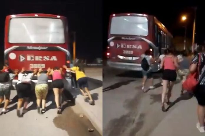 Un grupo de pasajeros, en su mayoría mujeres, empujaron al interno 3089 de ERSA en Córdoba (Villa Angelelli) para que arrancara…¡y arrancó!