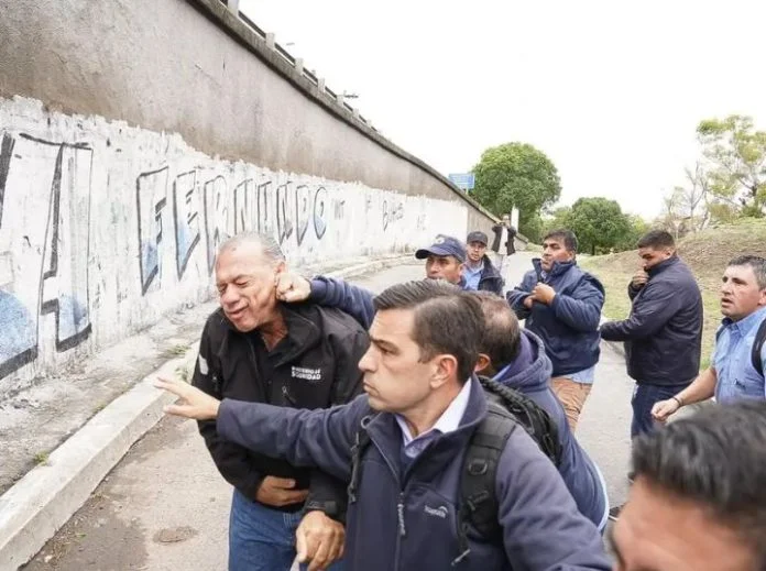 El ministro de Seguridad de la provincia de Buenos Aires, Sergio Berni, fue atacado a golpes y piedrazos esta mañana en medio de una protesta que un grupo de choferes de micros realizaba en la localidad de Lomas de Mirador, partido de la Matanza, con motivo del crimen del colectivero Daniel Barrientos, asesinado esta madrugada en un asalto.