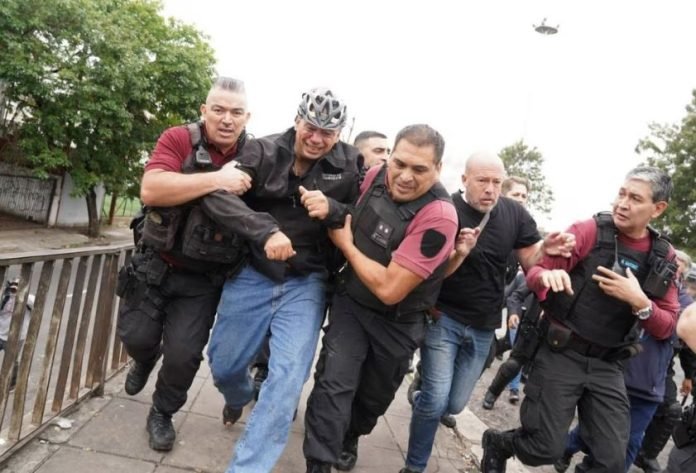 “Desde primera hora reclamaban la presencia del Ministro de Seguridad de la Provincia de Buenos Aires, Sergio Berni”, enumeró la abogada, quien luego sostuvo “que a poco de arribar en helicóptero el funcionario, fue rodeado, atacado por delante y por detrás, atacado en reiteradas ocasiones”.