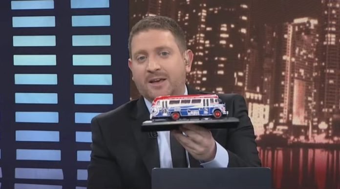 Luego del anuncio del Gobierno para que los pasajeros renuncien voluntariamente al subsidio del boleto de colectivo y tren, el periodista Jony Viale adelantó su editorial mostrando la unidad en escala intervenida con stickers de Milei.