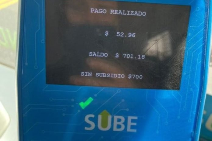 «Sin subsidio $700», es el nuevo mensaje que aparece en las validadoras de SUBE al pagar el colectivo, tal como lo mostró el usuario a la hora de apoyar el plástico en la pantalla.