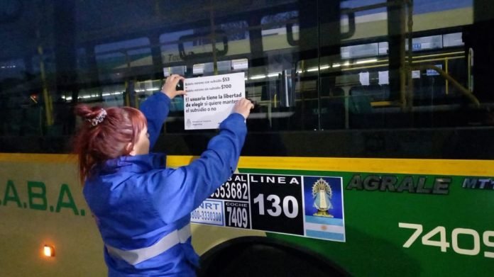 La Comisión Nacional de Regulación del Transporte (CNRT), organismo del Ministerio de Transporte, a través de la Disposición 639/2023 estableció la obligatoriedad de la aplicación de un cartel informativo en colectivos y trenes referido a la posibilidad de renunciar a los subsidios aplicados en las tarifas de transporte. La medida implica el derecho a recibir toda la información respecto a la tarifa y abarca a todas las empresas de transporte por automotor y ferroviario de pasajeros de carácter urbano y suburbano, encontrándose visible a la izquierda de la puerta delantera de acceso.