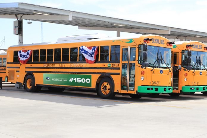 Blue Bird ha entregado su autobús escolar eléctrico de cero emisiones número 1.500 a las escuelas de la ciudad de Modesto en California.
