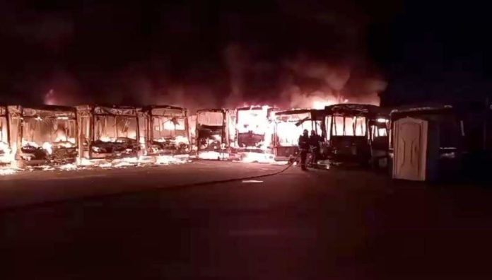 El hecho se había desencadenado cuando un grupo de jóvenes, en su mayoría de 20 años, arrojó bombas molotov al lugar de 150 metros de largo por 100 de ancho que albergaba a unos 120 colectivos.