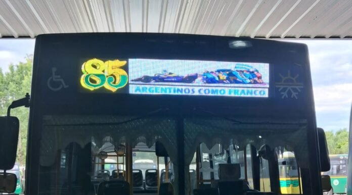 Del gol a los ingleses de Diego Maradona al F1 Williams de Franco Colapinto. La Línea 85 aprovecha sus carteleras LED programables para sumar contenidos relacionados con la actualidad y divertir a los pasajeros que esperan en las paradas aunque sea unos segundos antes que la unidad se detenga.