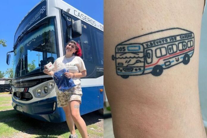 Se tatuó el colectivo en el que viajó toda la vida a su casa y se hizo viral: “Verlo venir me hacía feliz”