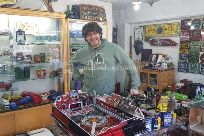 En su taller suena una radio de fondo. Si, es una pequeña radio que Darío colocó dentro de un colectivo en escala…