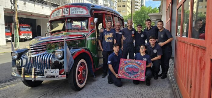 El Museo del Colectivo, el Ómnibus y el Trolebus visitó el Cuartel de Bomberos Voluntarios de Lomas de Zamora con el colectivo histórico de la línea 45, el Chevrolet 1942 y les llevó unos presentes en agradecimiento por participar en Noche de los Museos 2024 en Boedo con su autobomba histórico Mercedes Benz 911 del año 1969.