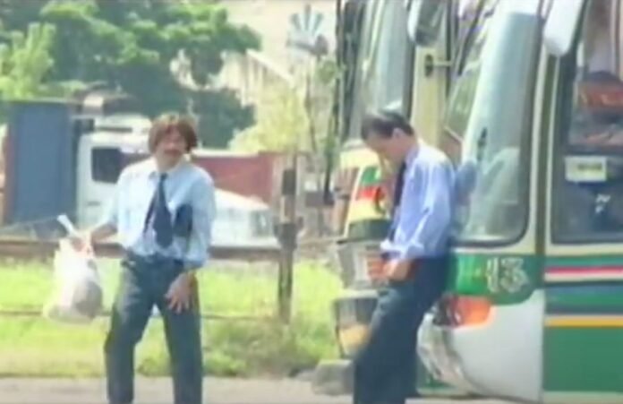 En el sketch se pueden ver varios colectivos Marcopolo Viale en la terminal.