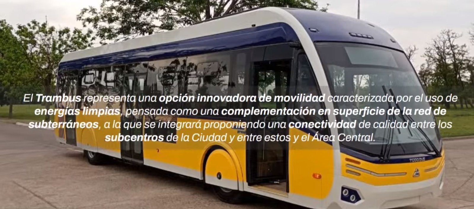 El Gobierno de la Ciudad de Buenos Aires (GCBA) presentó en audiencia pública el proyecto de «trambús» que planea implementar a partir del año que viene. En la presentación se detalló la traza del primer recorrido de la nueva línea de colectivos ciento por ciento eléctricos, que circularán por carriles exclusivos entre Nueva Pompeya y el Aeroparque. Adelantaron que primero se realizará una prueba experimental en la Avenida Juan B. Justo.